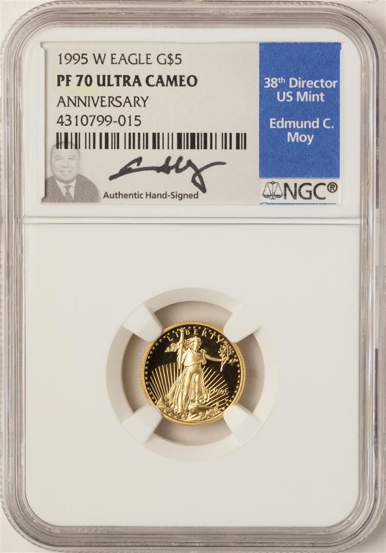 1995-W $5 American Gold Eagle Proof Coin NGC PF70 W/Edmund C. Moy Signature