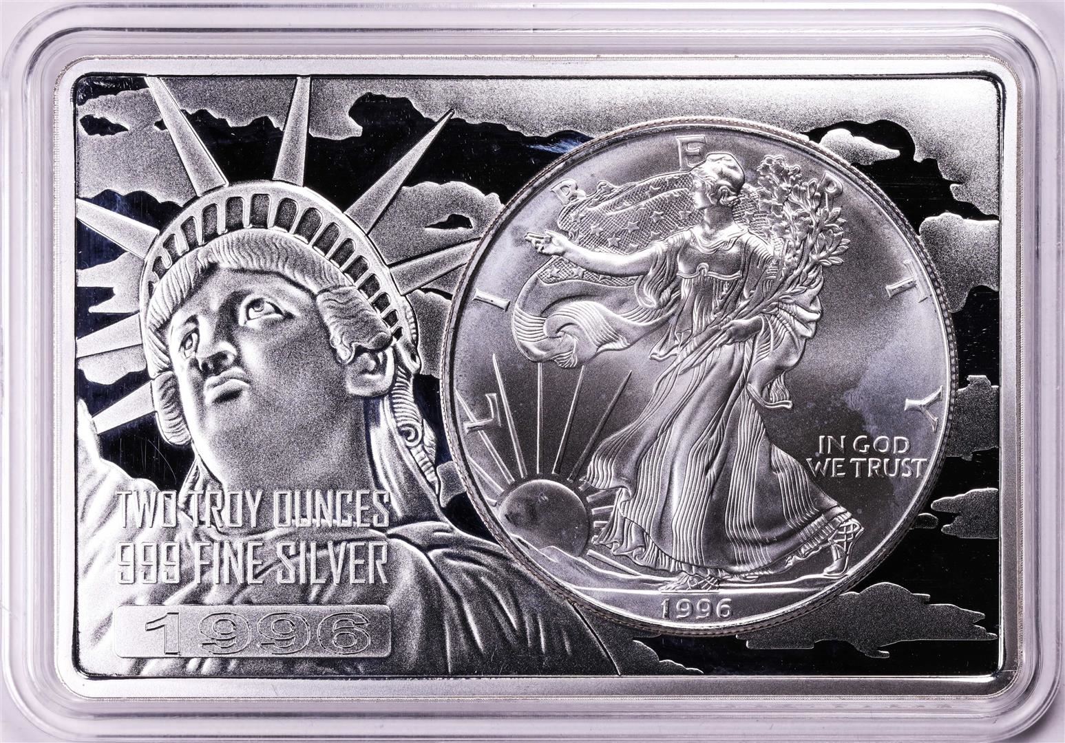 One 1996 $1 American Silver Eagle Coin & 2oz Silver Bar Set.