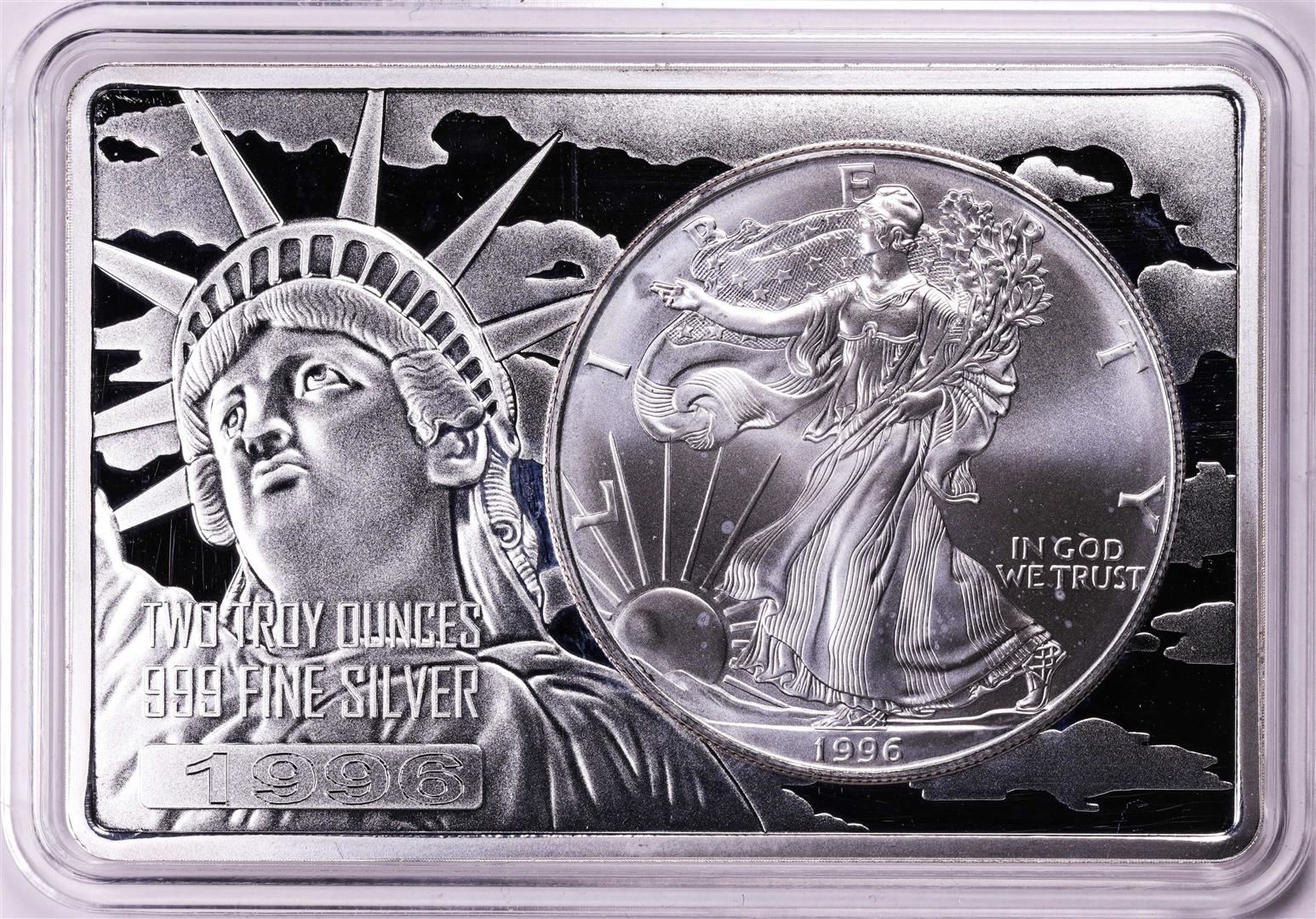 One 1996 $1 American Silver Eagle Coin & 2oz Silver Bar Set.