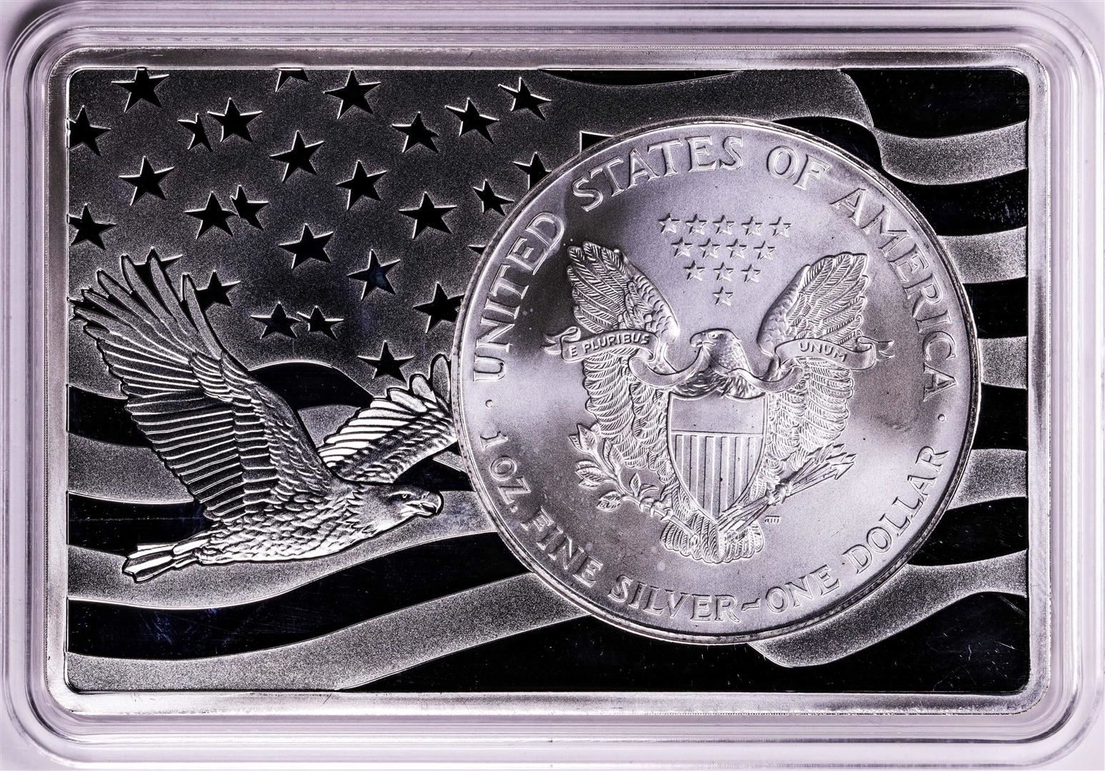 One 1996 $1 American Silver Eagle Coin & 2oz Silver Bar Set.