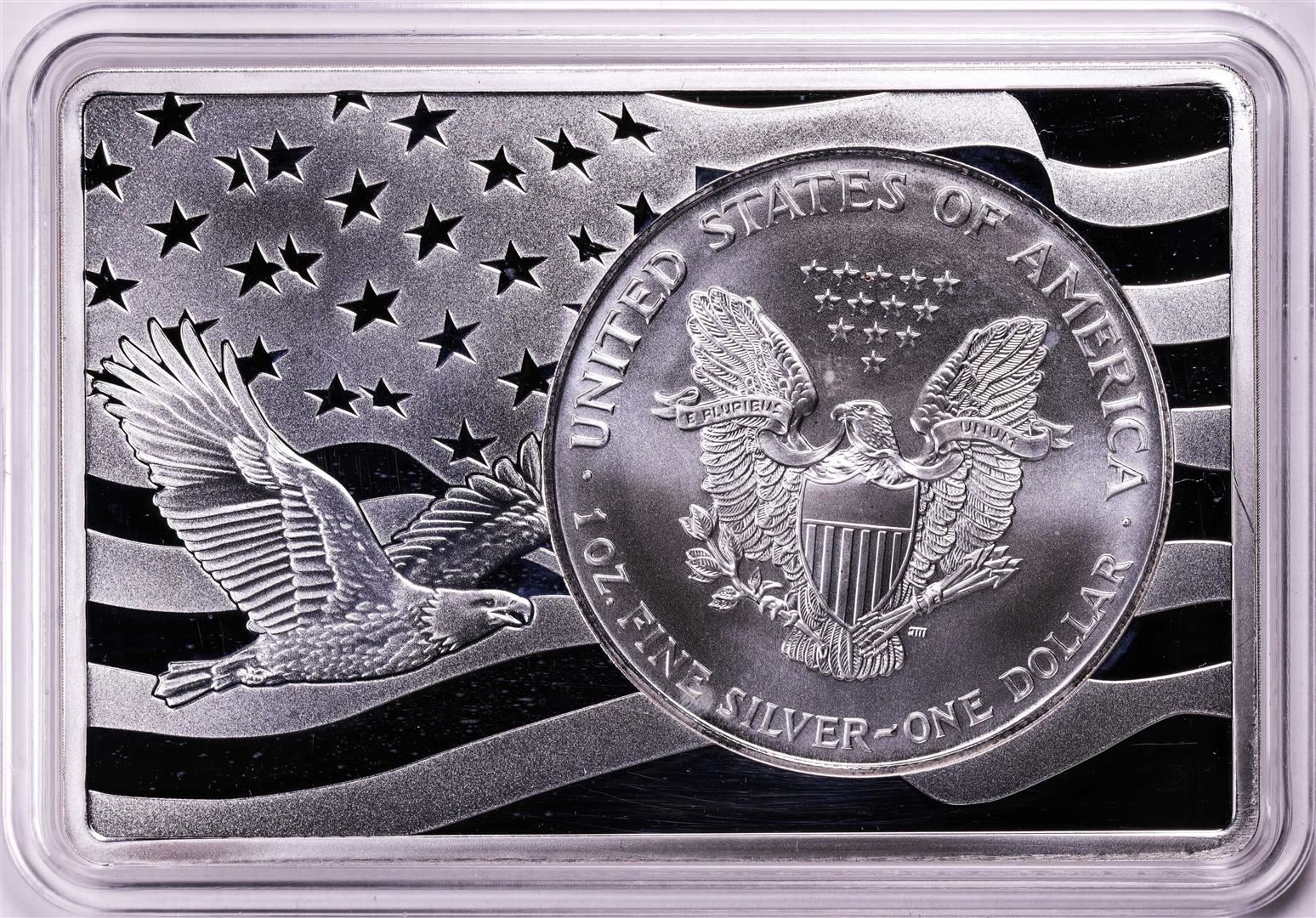 One 1996 $1 American Silver Eagle Coin & 2oz Silver Bar Set.