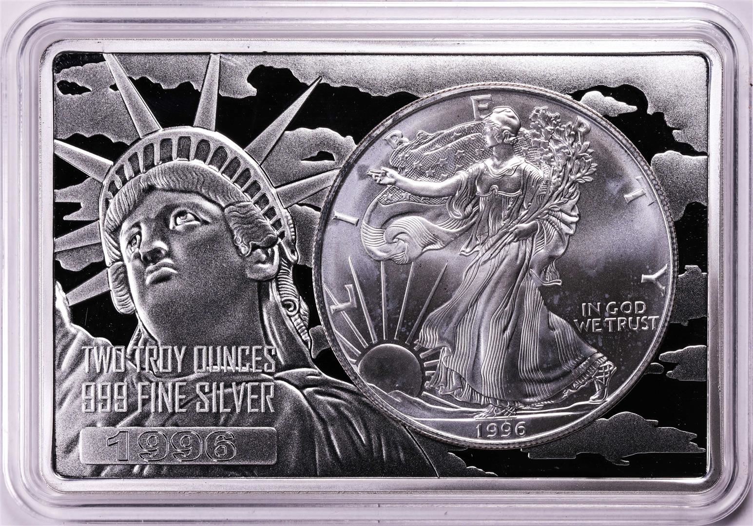 One 1996 $1 American Silver Eagle Coin & 2oz Silver Bar Set.