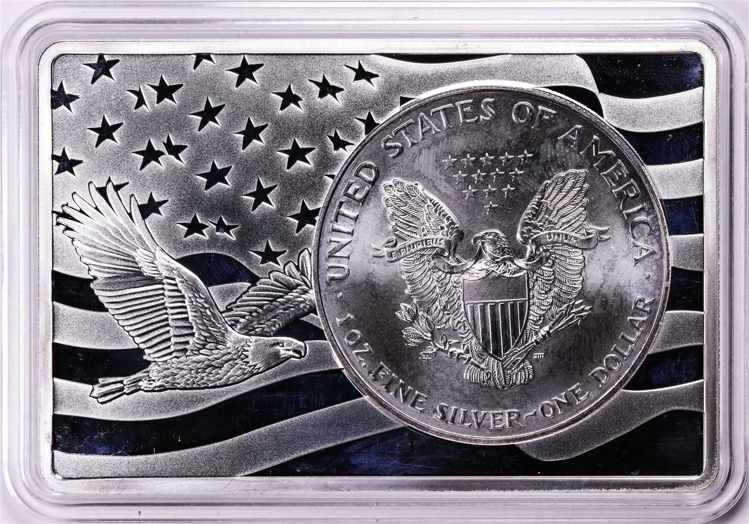 One 1996 $1 American Silver Eagle Coin & 2oz Silver Bar Set.