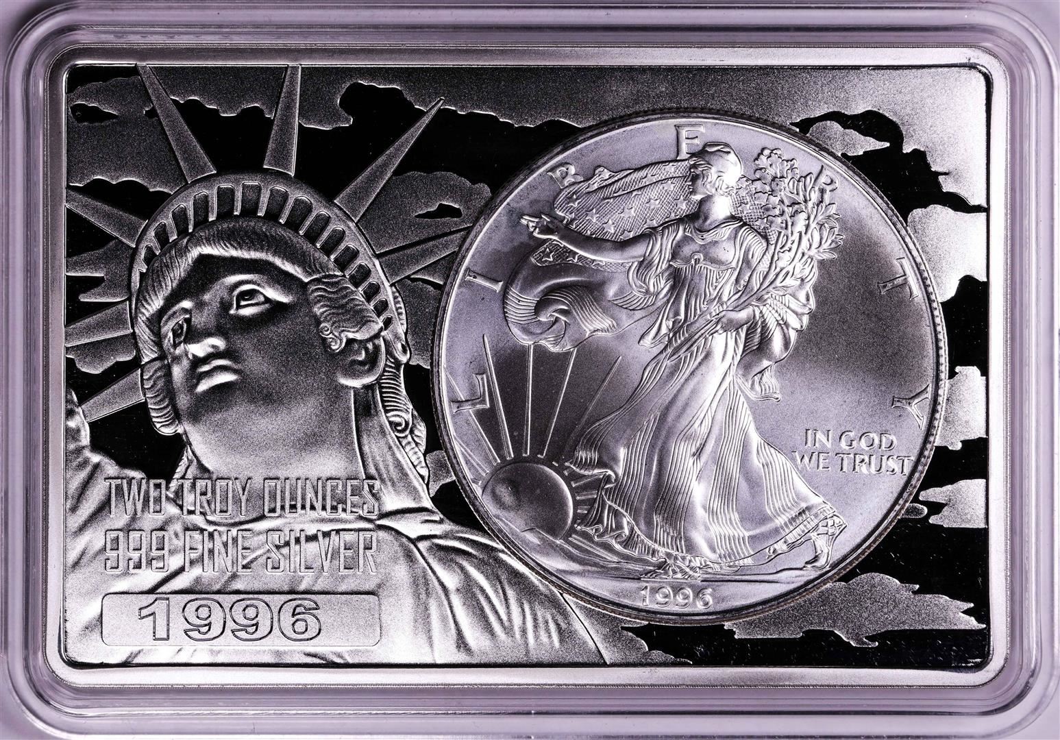 One 1996 $1 American Silver Eagle Coin & 2oz Silver Bar Set.