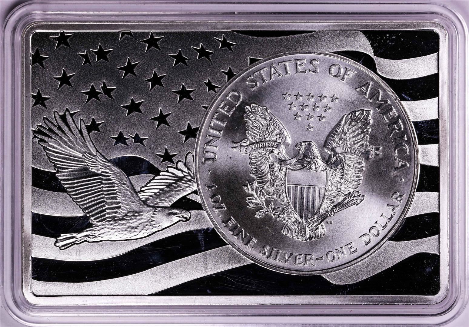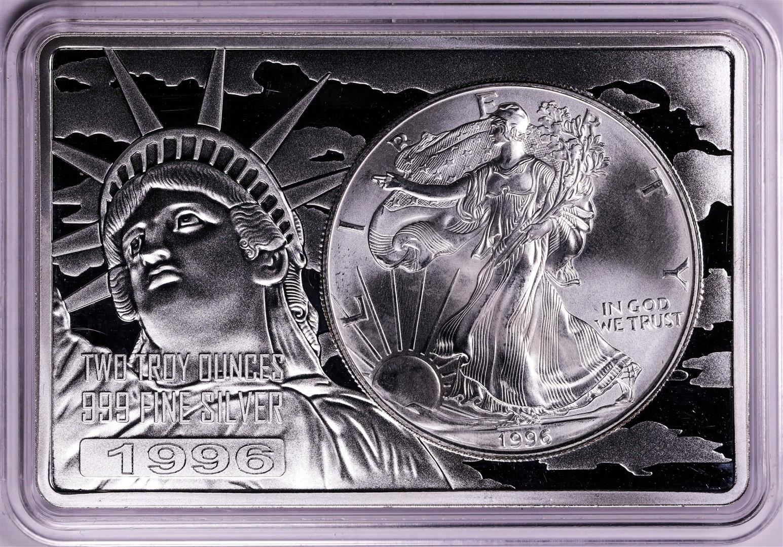 One 1996 $1 American Silver Eagle Coin & 2oz Silver Bar Set.