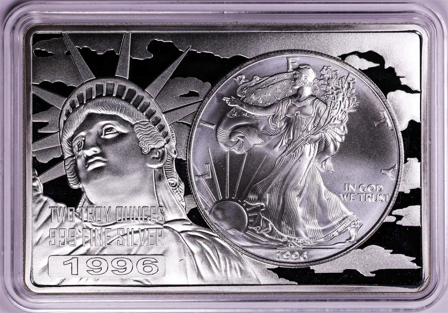 One 1996 $1 American Silver Eagle Coin & 2oz Silver Bar Set.