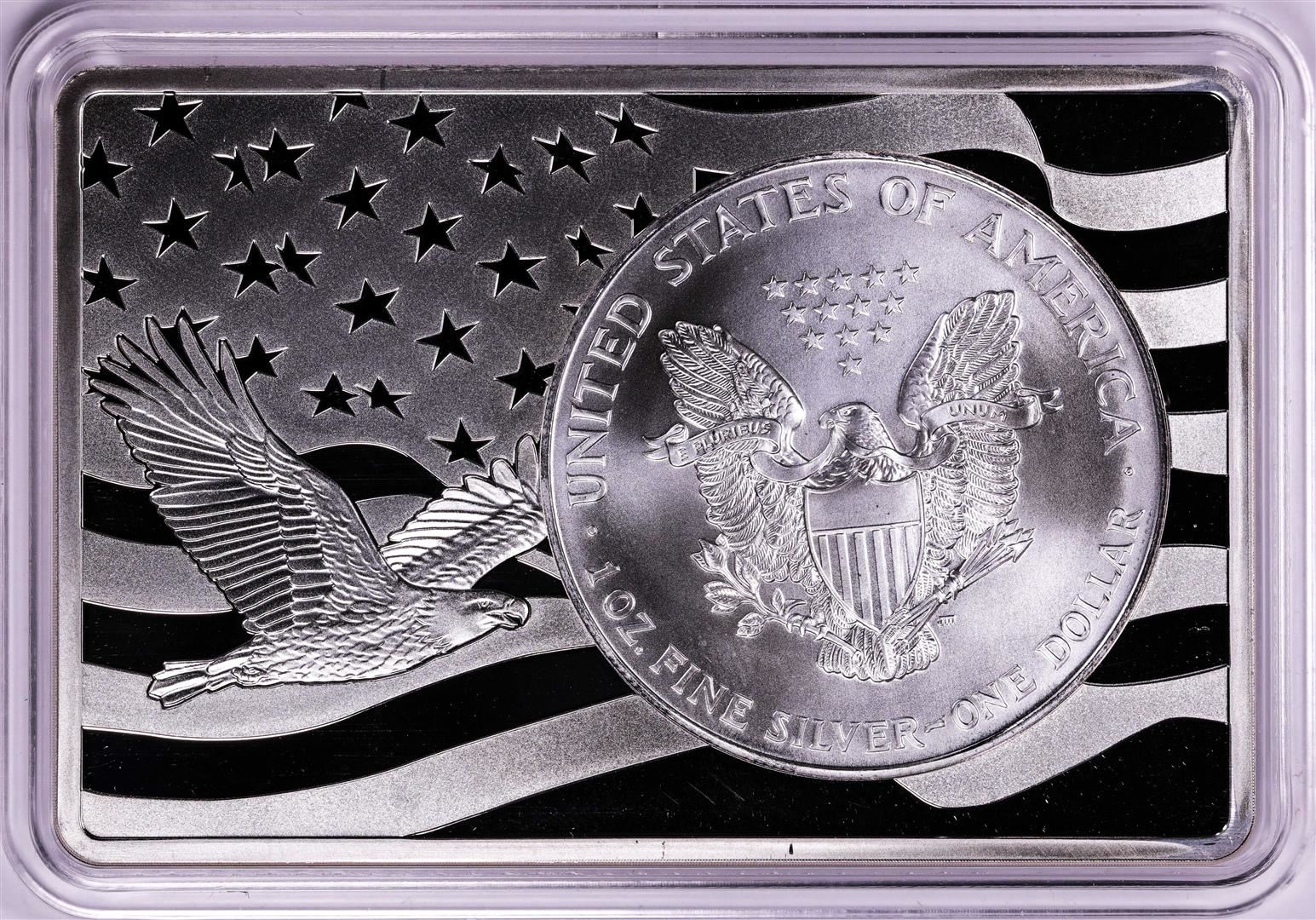 One 1996 $1 American Silver Eagle Coin & 2oz Silver Bar Set.