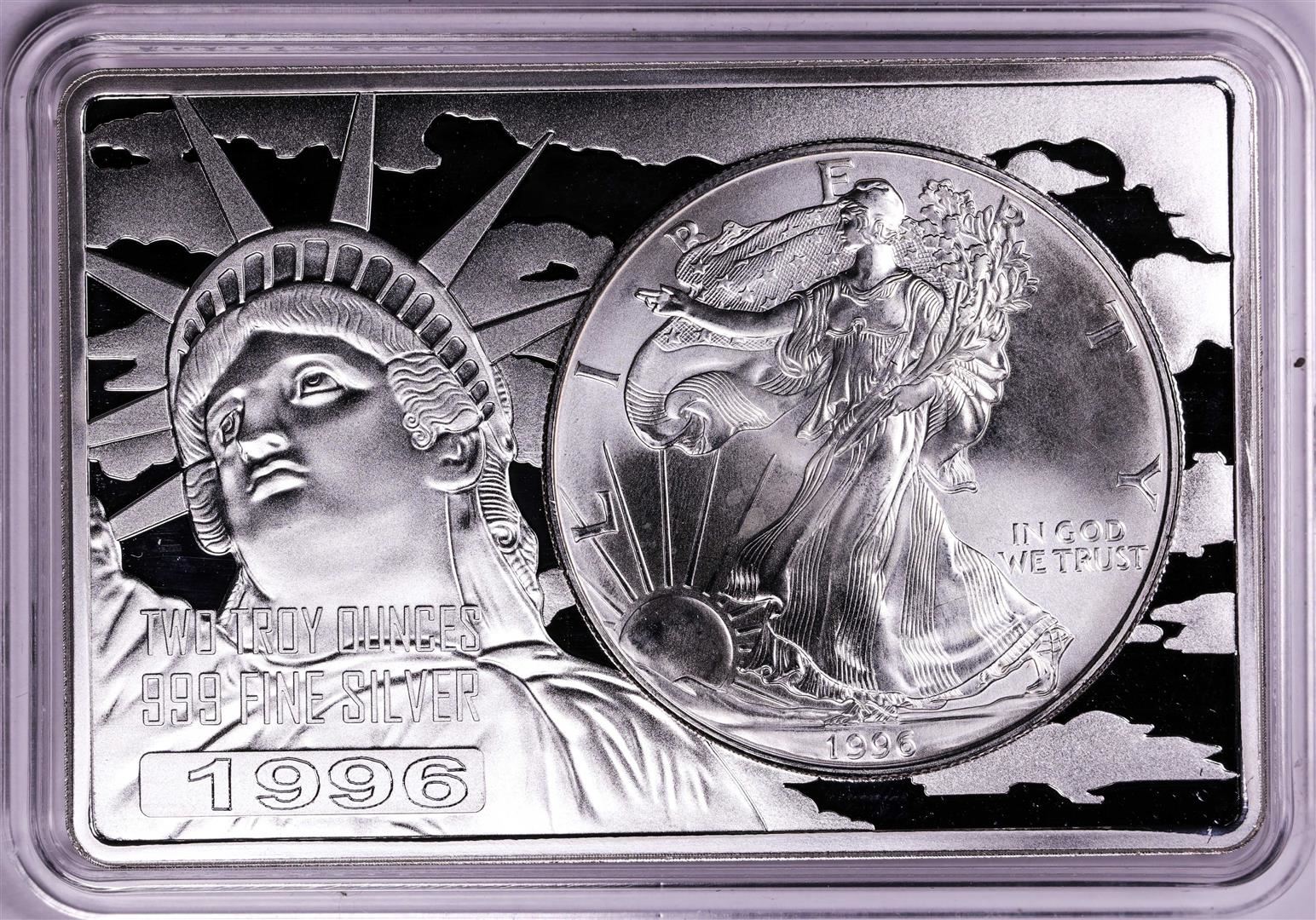 One 1996 $1 American Silver Eagle Coin & 2oz Silver Bar Set.