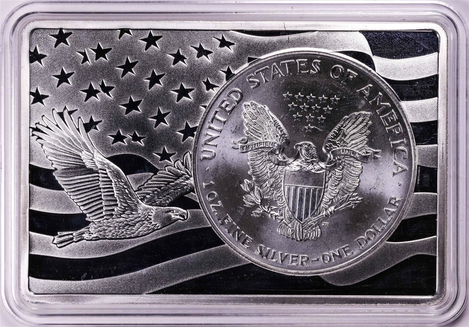 One 1996 $1 American Silver Eagle Coin & 2oz Silver Bar Set.