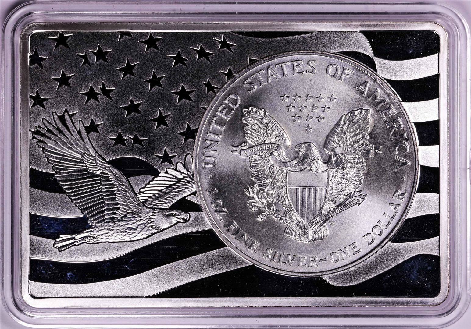 One 1996 $1 American Silver Eagle Coin & 2oz Silver Bar Set.