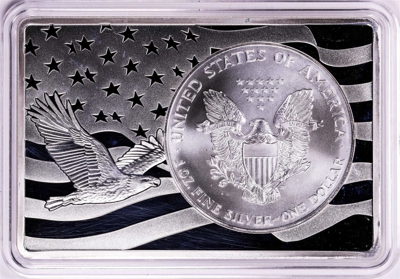 One 1996 $1 American Silver Eagle Coin & 2oz Silver Bar Set.