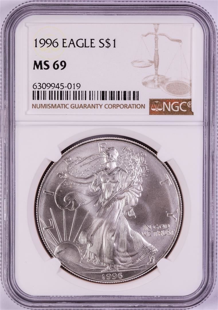 One 1996 $1 American Silver Eagle Coin NGC MS69. NGC Certified.