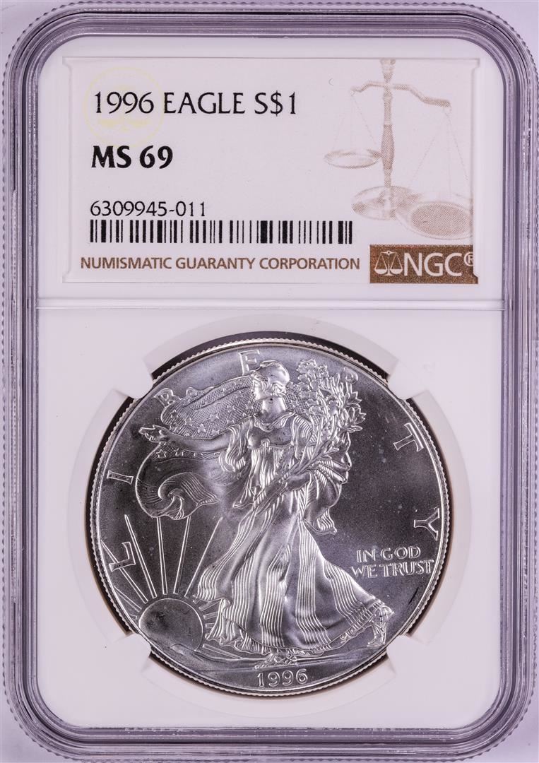 One 1996 $1 American Silver Eagle Coin NGC MS69. NGC Certified.