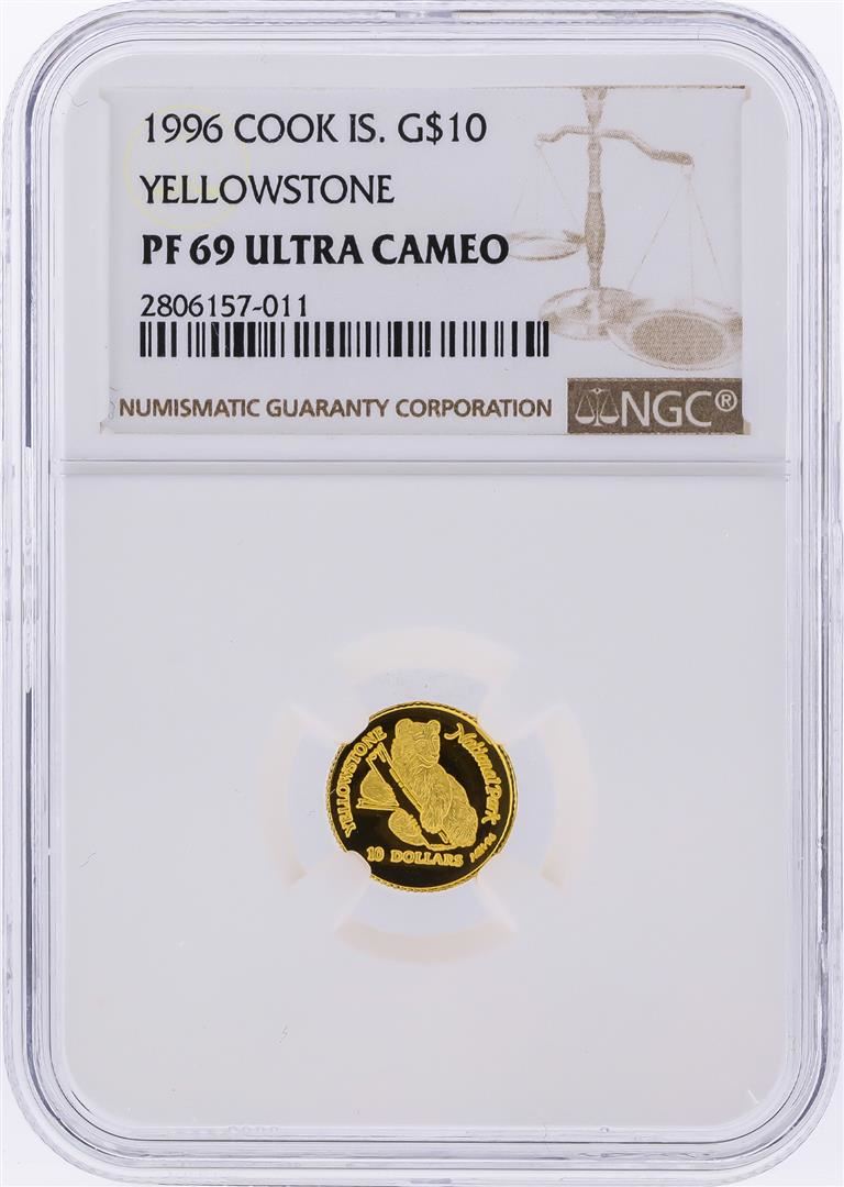 1996 $10 Cook Island Yellowstone Gold Coin NGC PF69 Ultra Cameo