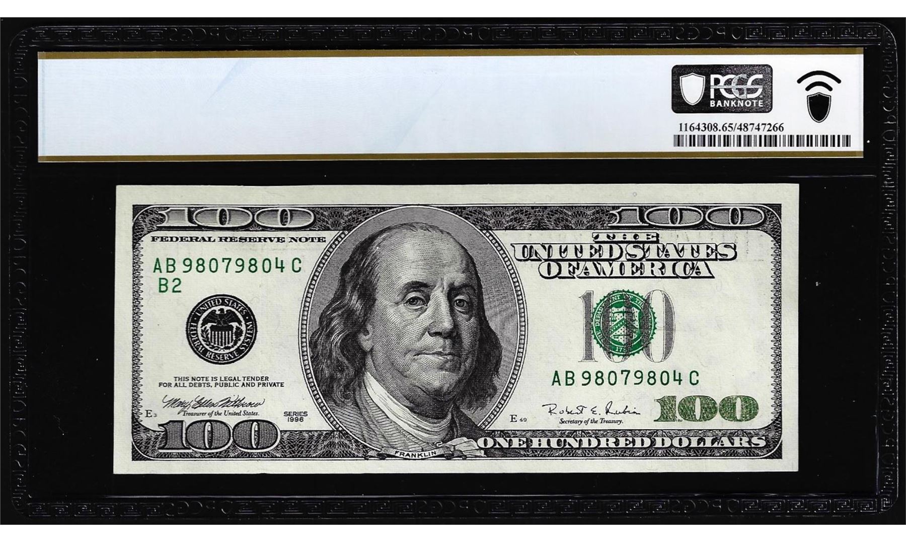 1996 $100 Federal Reserve Note Partial Matte Offset Error PCGS Gem Uncirculated 65PPQ