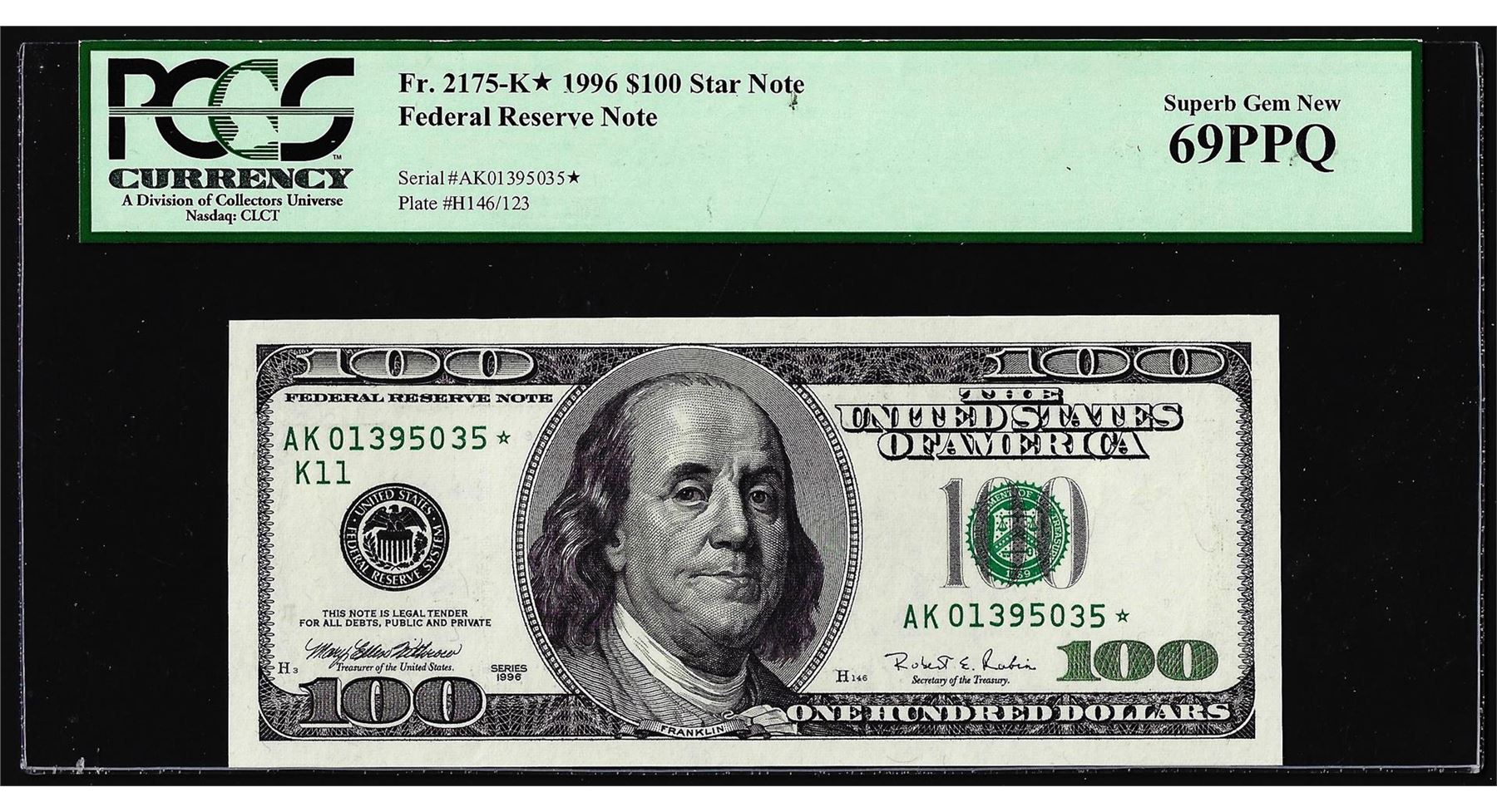 1996 $100 Federal Reserve STAR Note Fr.2175-K* PCGS Superb Gem New 69PPQ