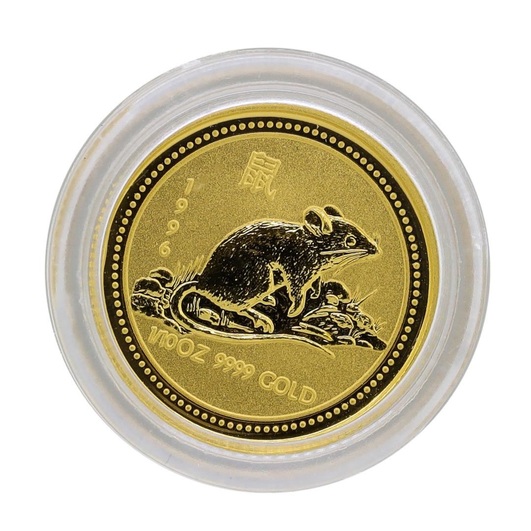One 1996 $15 Australia Lunar Year of the Rat 1/10 oz. Gold Coin.