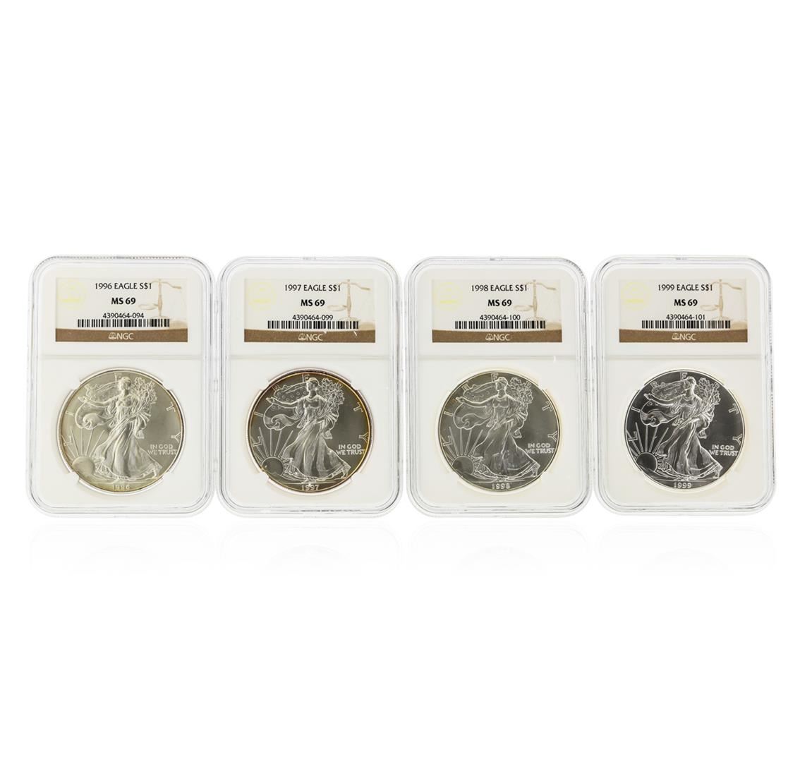 One 1996-1999 $1 American Silver Eagle Coins NGC Graded MS69. NGC Certified.