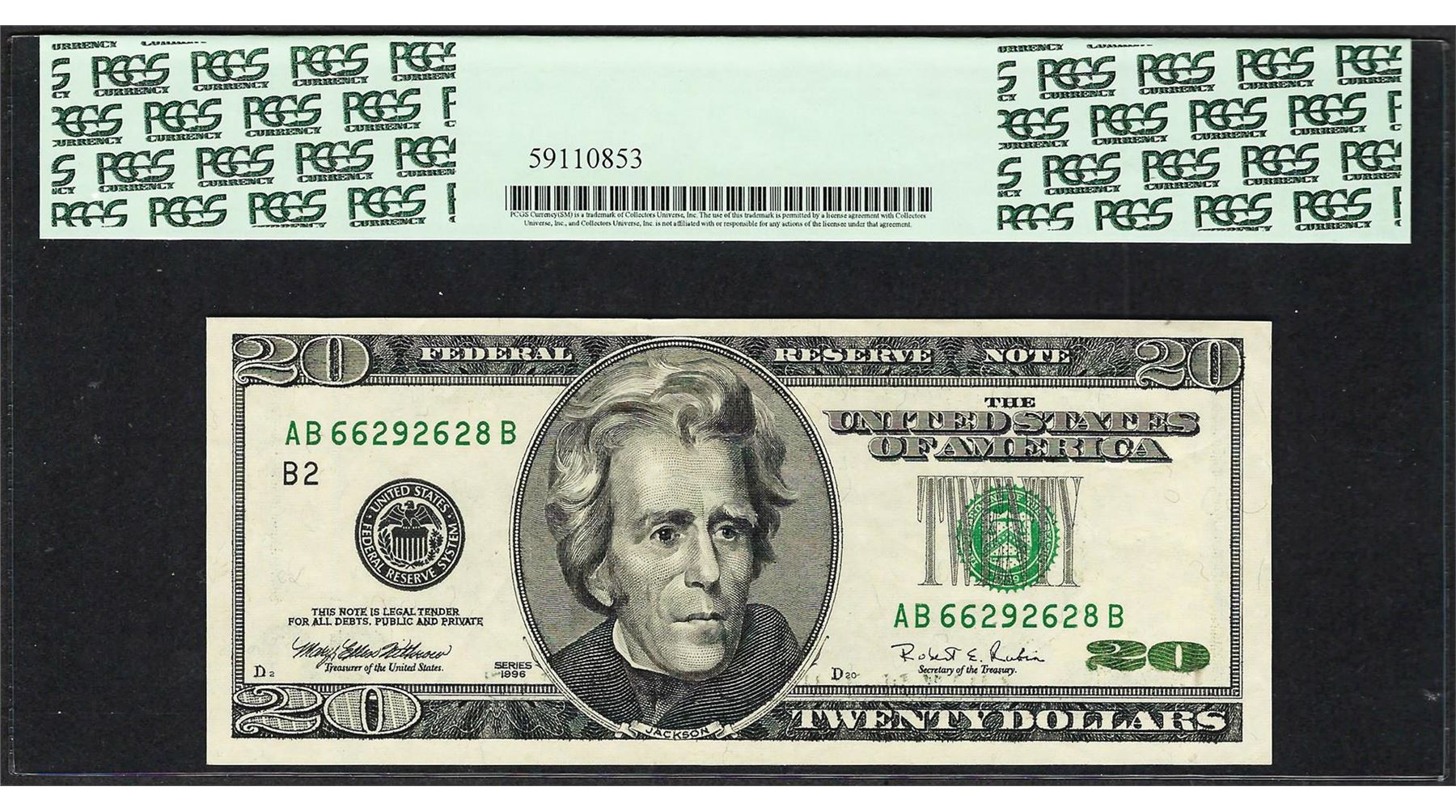 1996 $20 Federal Reserve Note Full Face Offset ERROR PCGS Choice About New 55PPQ