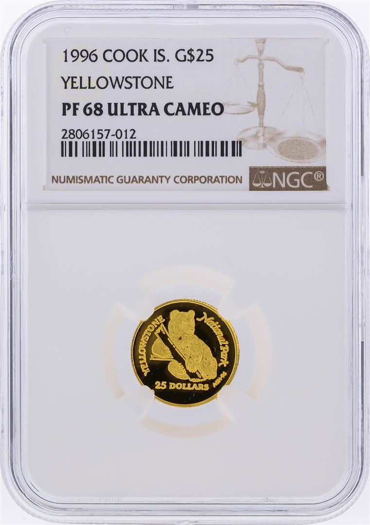 One 1996 $25 Cook Island Yellowstone Gold Coin NGC PF68 Ultra Cameo. NGC Certified.