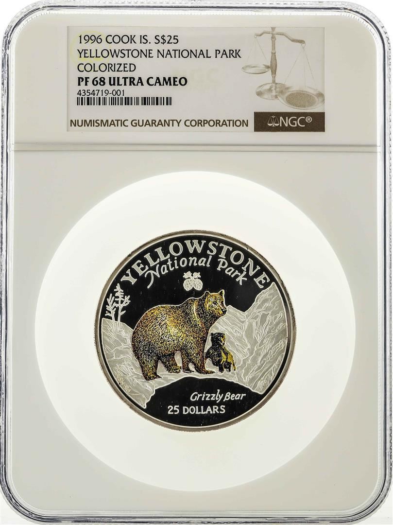 One 1996 $25 Cook Island Yellowstone National Park Colorized Coin NGC PF68 Ultra Cameo. NGC Certified.