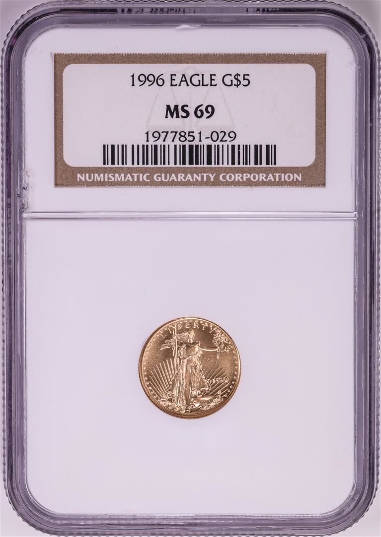 One 1996 $5 American Gold Eagle Coin NGC MS69. NGC Certified.