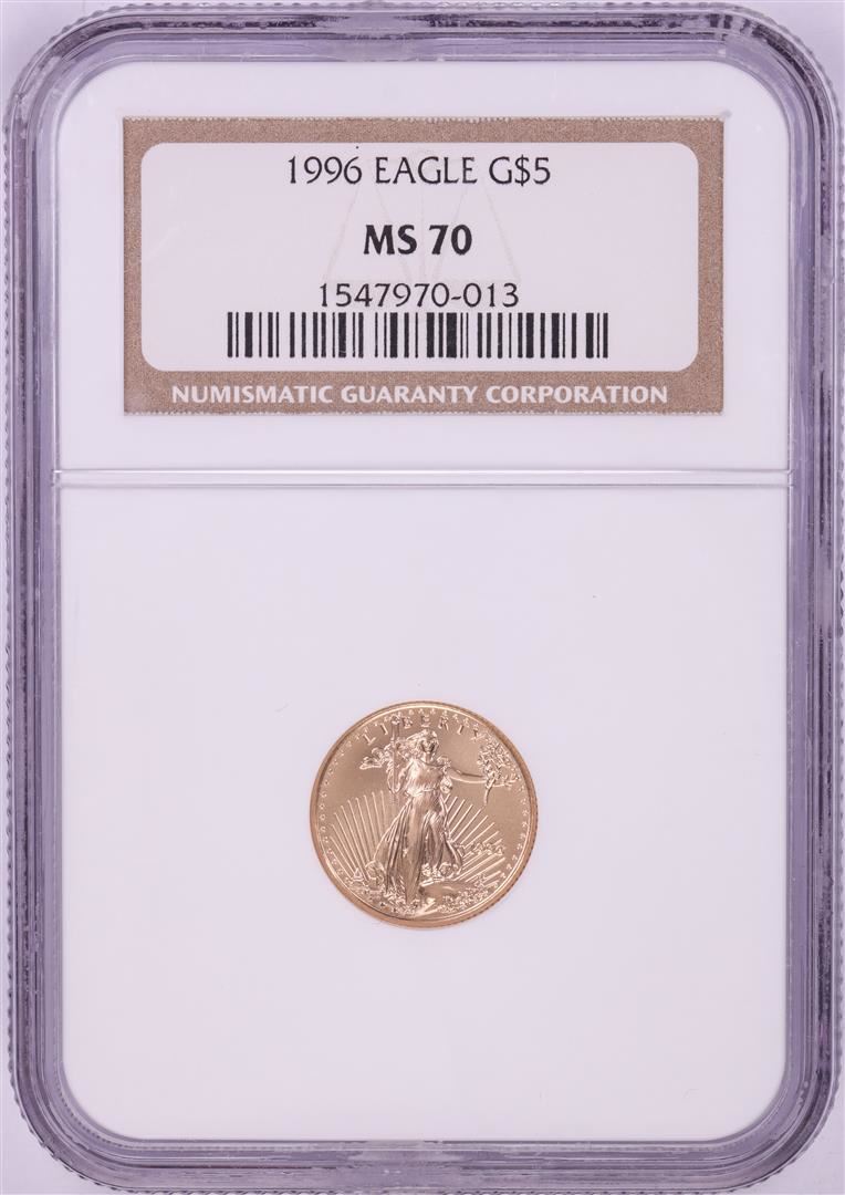 One 1996 $5 American Gold Eagle Coin NGC MS70. NGC Certified.
