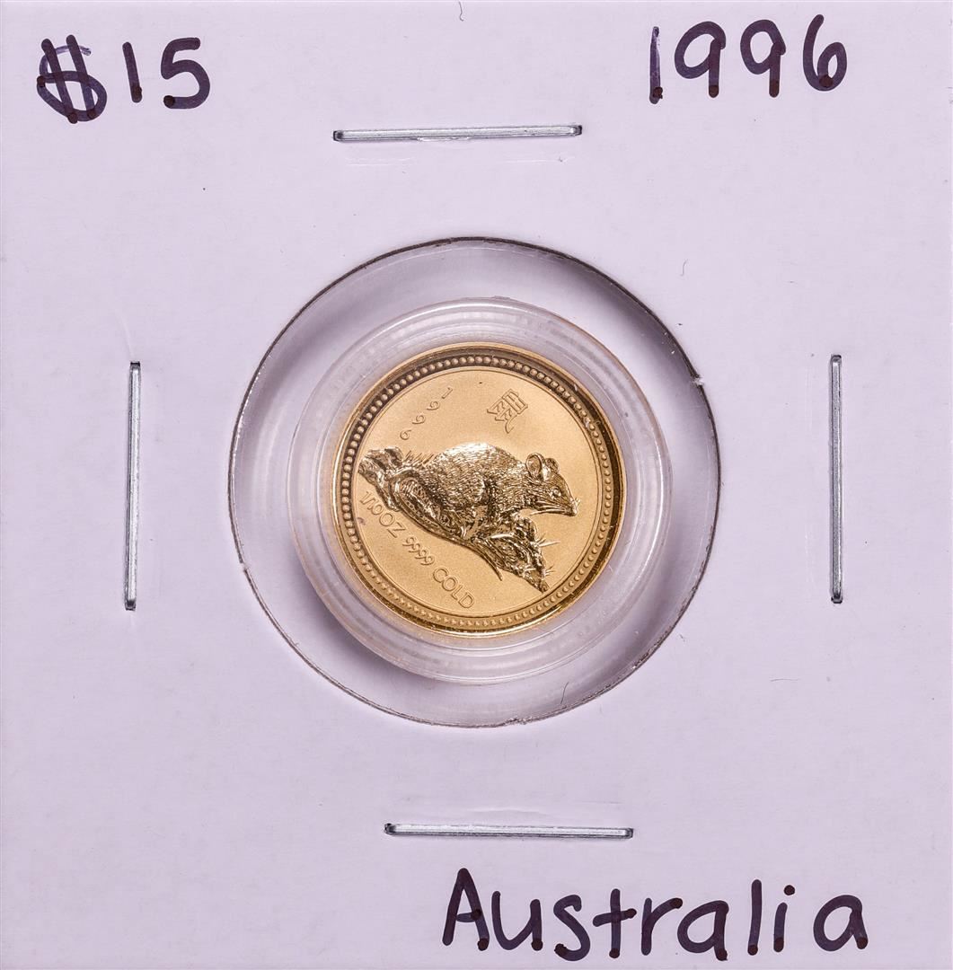 One 1996 Australia $15 Year Of The Rat 1/10 oz Gold Coin.