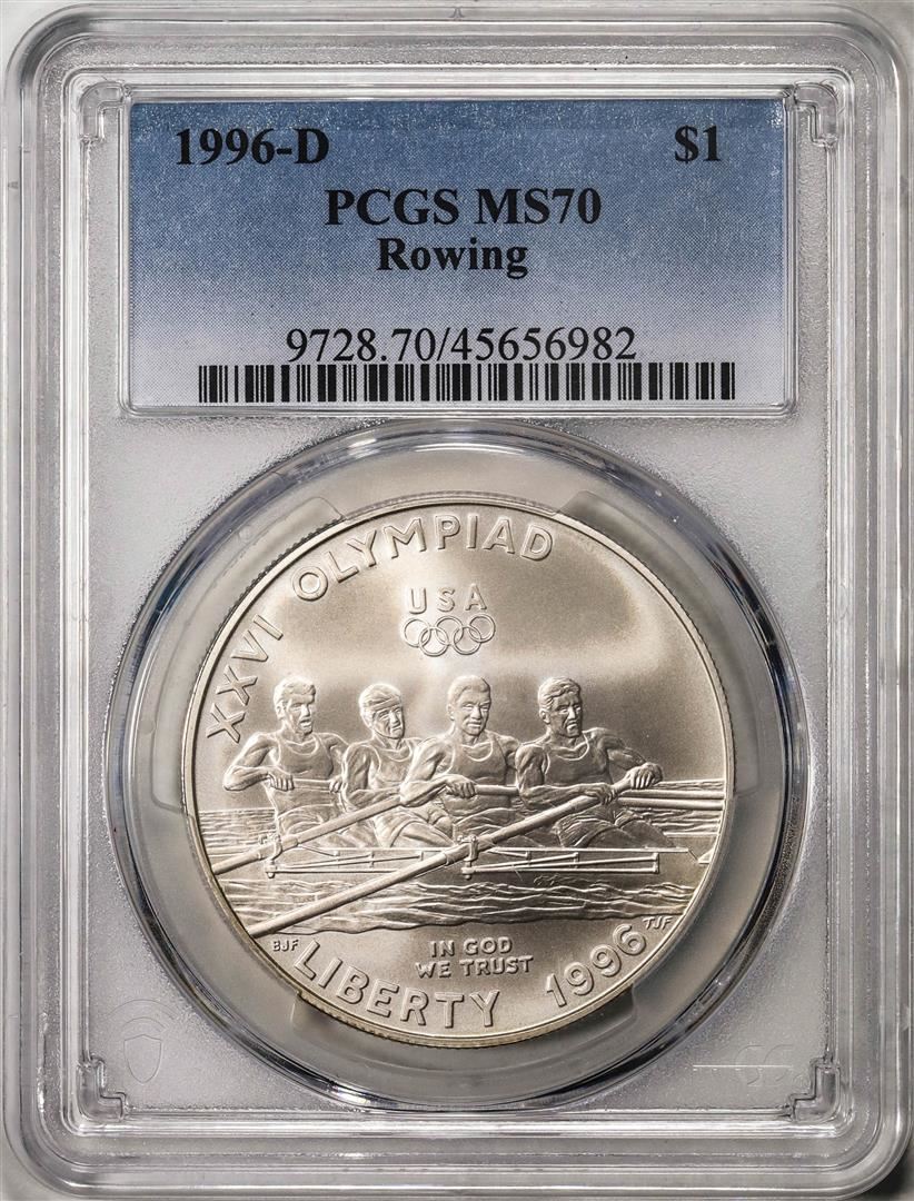 One 1996-D $1 Olympics Rowing Commemorative Silver Dollar Coin PCGS MS70. PCGS Graded.