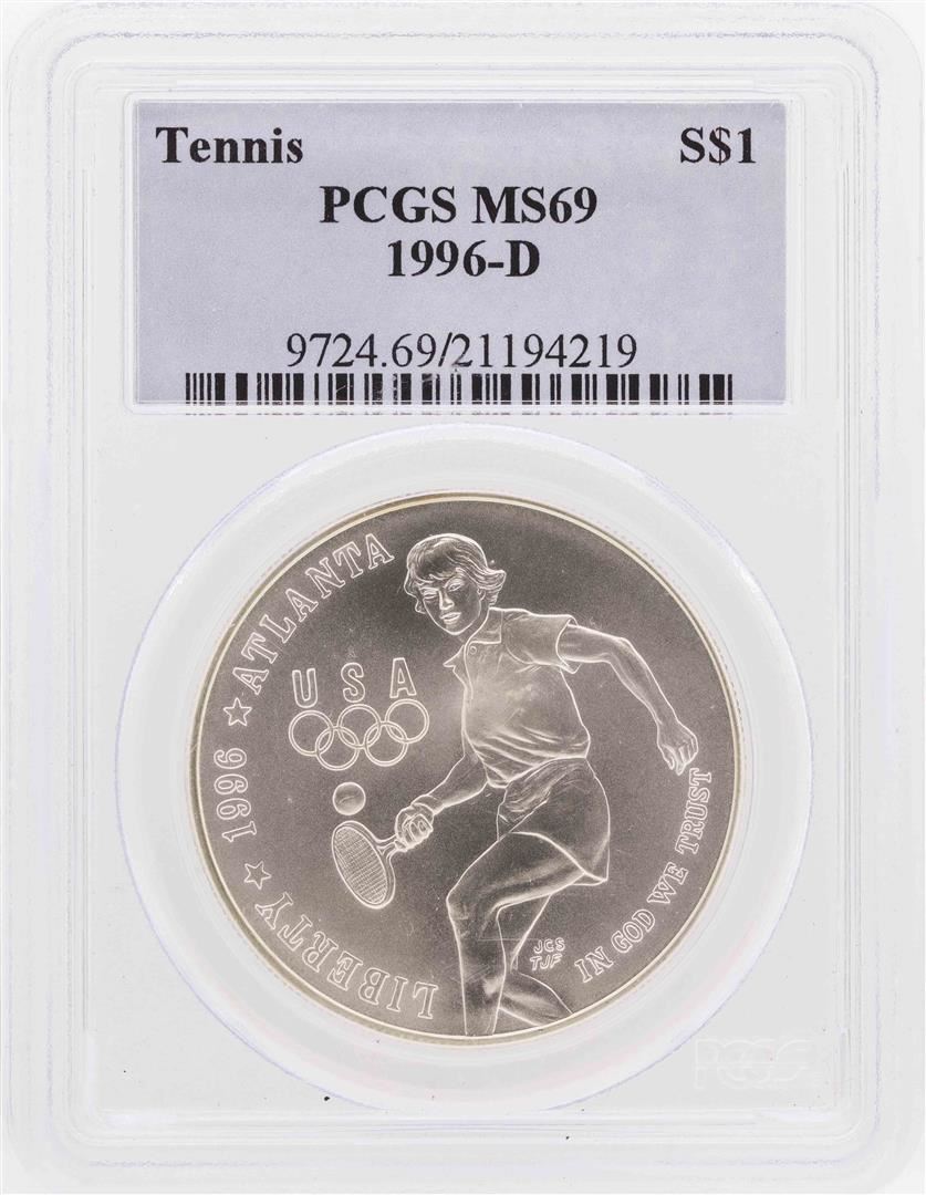 One 1996-D $1 Tennis Olympic Commemorative Silver Dollar Coin PCGS MS69. PCGS Graded.