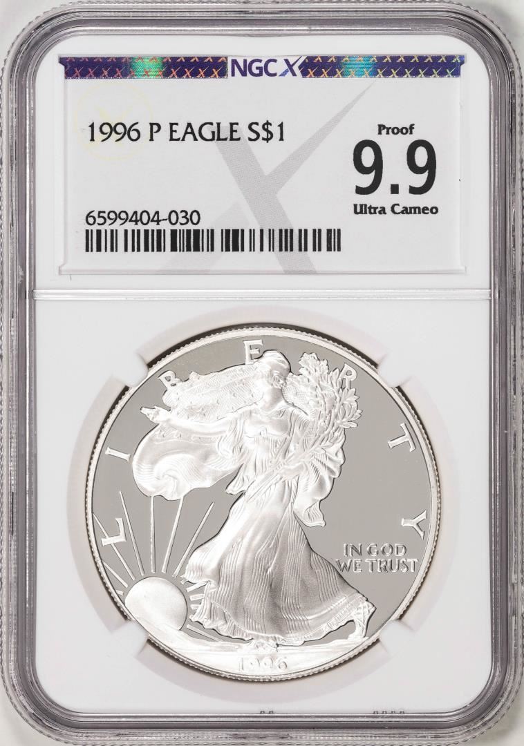 One 1996-P $1 American Silver Eagle Coin NGCX Proof 9.9 Ultra Cameo. NGC Certified.