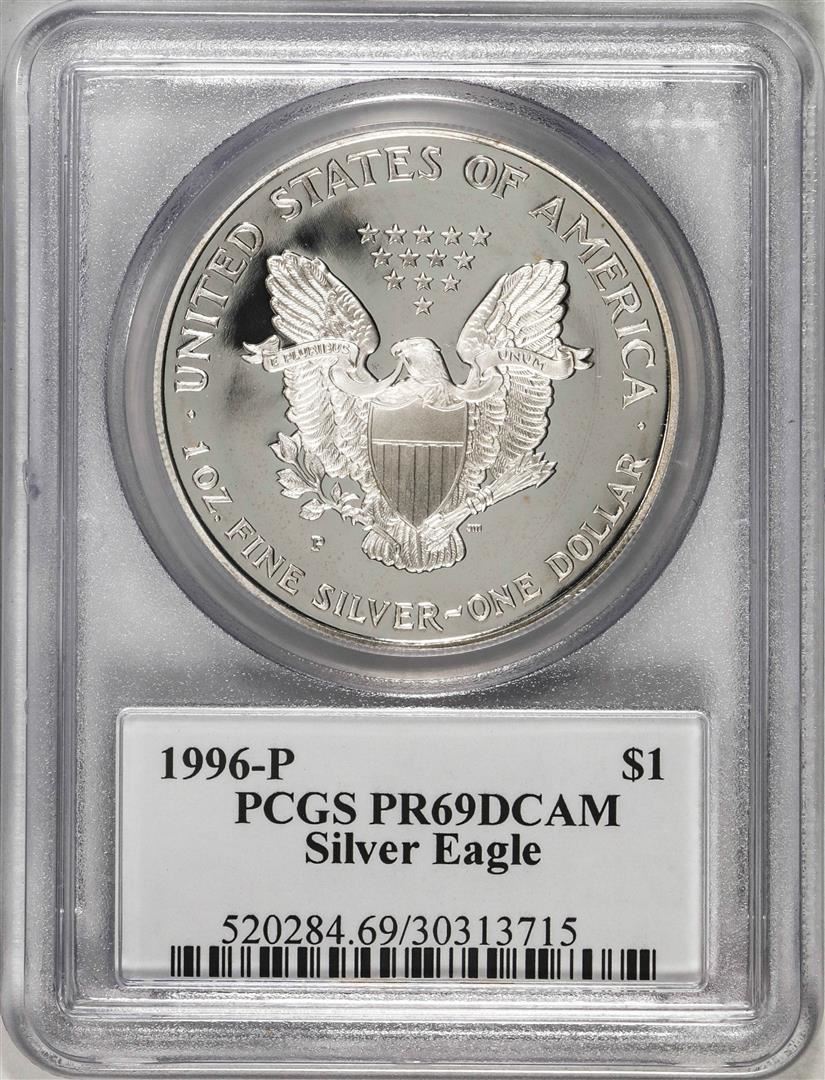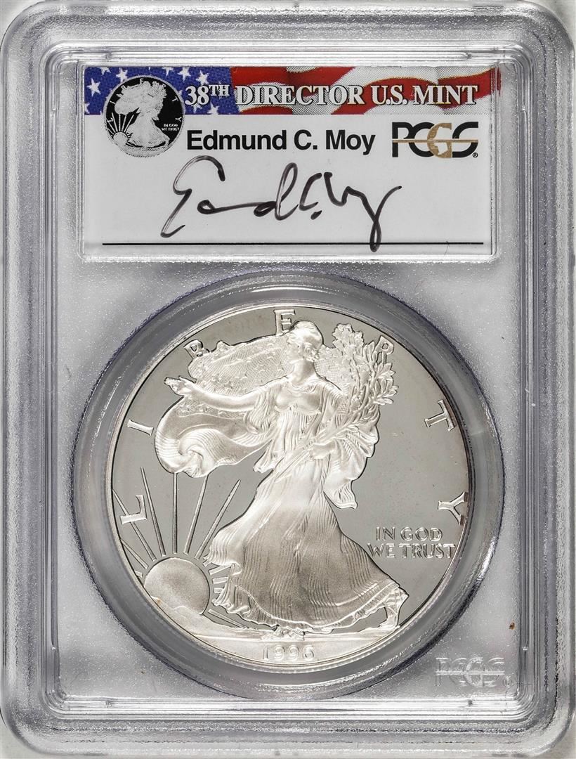 One 1996-P $1 Proof American Silver Eagle Coin PCGS PR69DCAM Edmund Moy Signature. PCGS Graded.