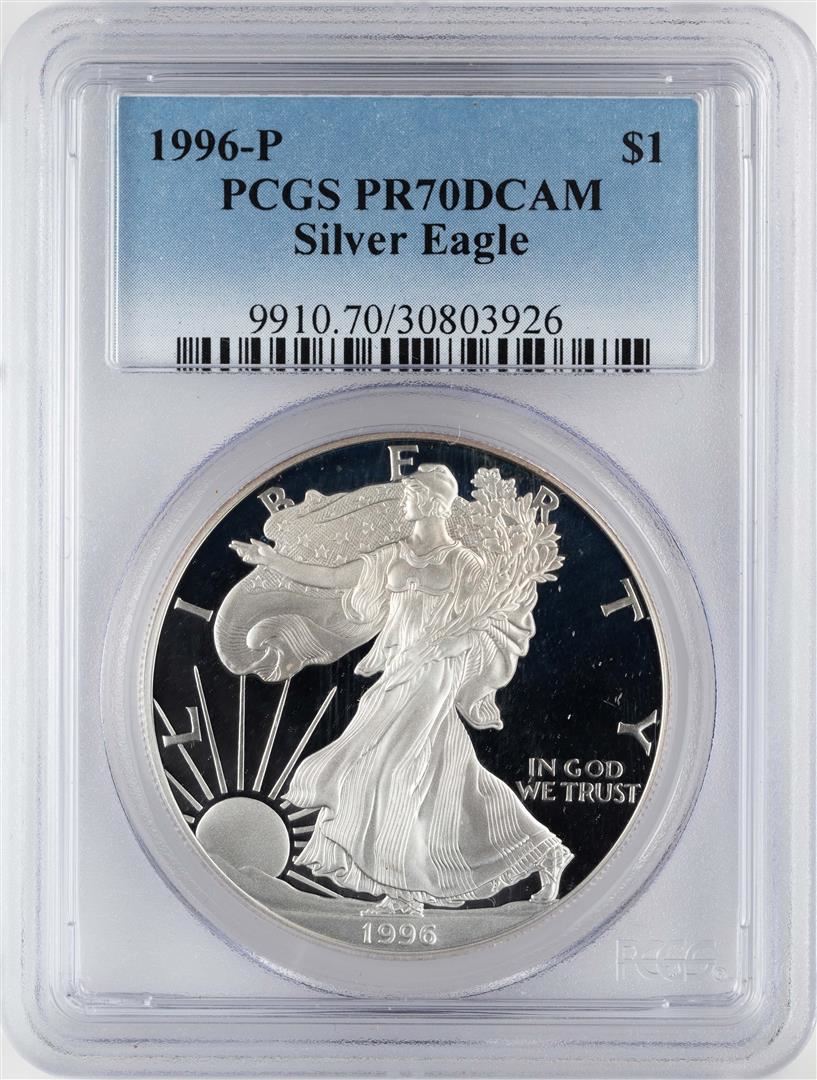 One 1996-P $1 Proof American Silver Eagle Coin PCGS PR70DCAM. PCGS Graded.