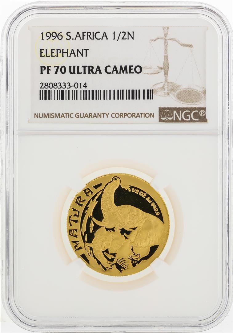 One 1996 South Africa 1/2 Natura Elephant 1/2 oz Gold Coin NGC PF70 Ultra Cameo. NGC Certified.
