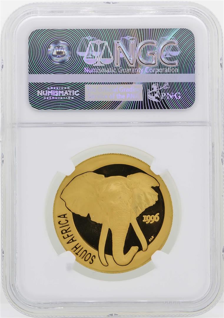 One 1996 South Africa Natura Elephant 1 oz Gold Coin NGC PF70 Ultra Cameo. NGC Certified.