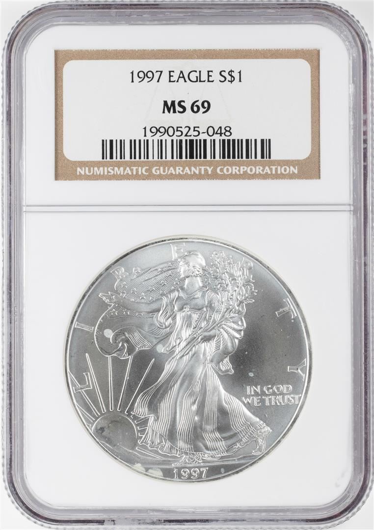 One 1997 $1 American Silver Eagle Coin NGC MS69. NGC Certified.