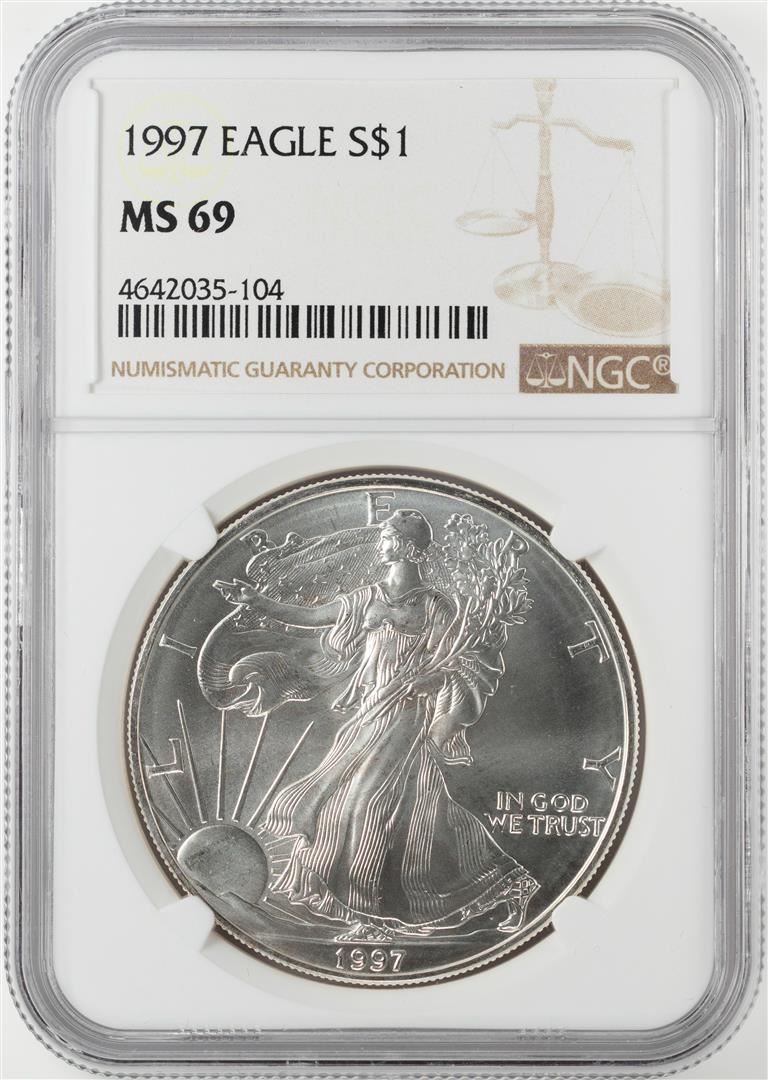 One 1997 $1 American Silver Eagle Coin NGC MS69. NGC Certified.