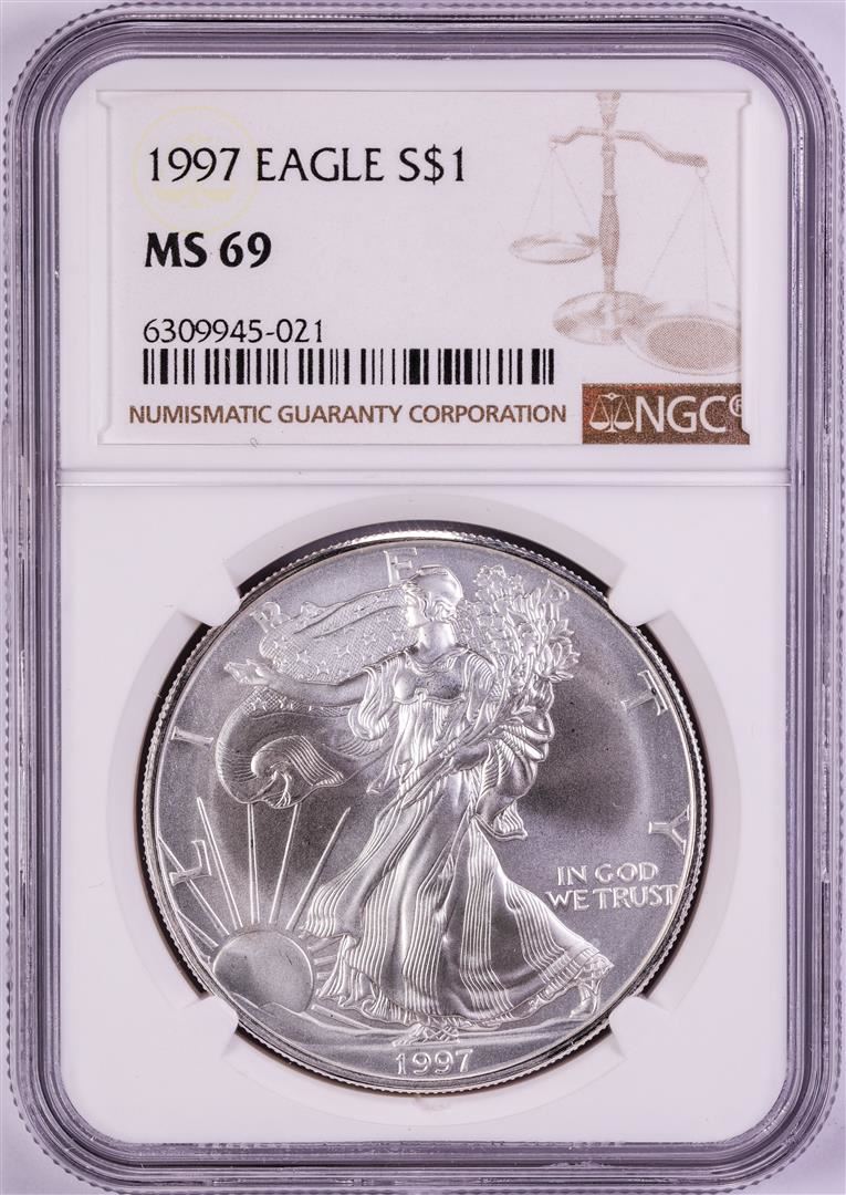 One 1997 $1 American Silver Eagle Coin NGC MS69. NGC Certified.