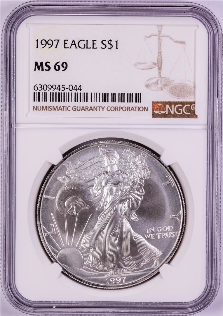 One 1997 $1 American Silver Eagle Coin NGC MS69. NGC Certified.