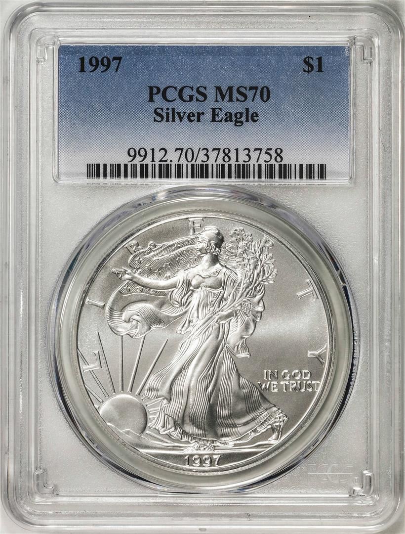 One 1997 $1 American Silver Eagle Coin NGC MS70. NGC Certified.