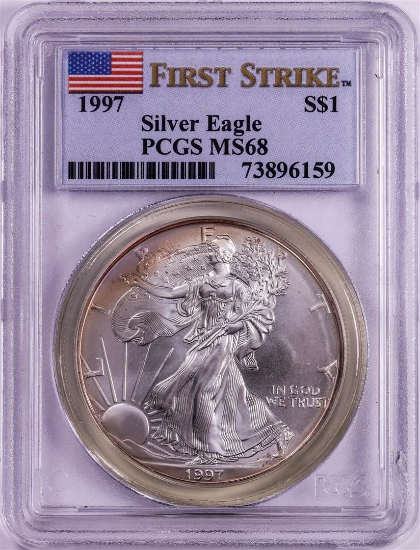 1997 $1 American Silver Eagle Coin PCGS MS68 First Strike