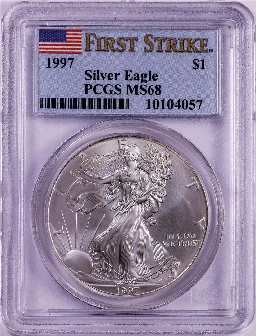 One 1997 $1 American Silver Eagle Coin PCGS MS68 First Strike. PCGS Graded.