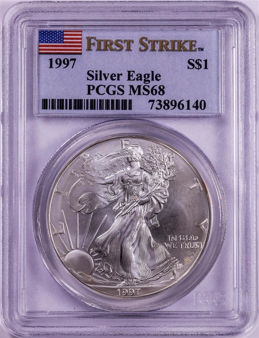 One 1997 $1 American Silver Eagle Coin PCGS MS68 First Strike. PCGS Graded.