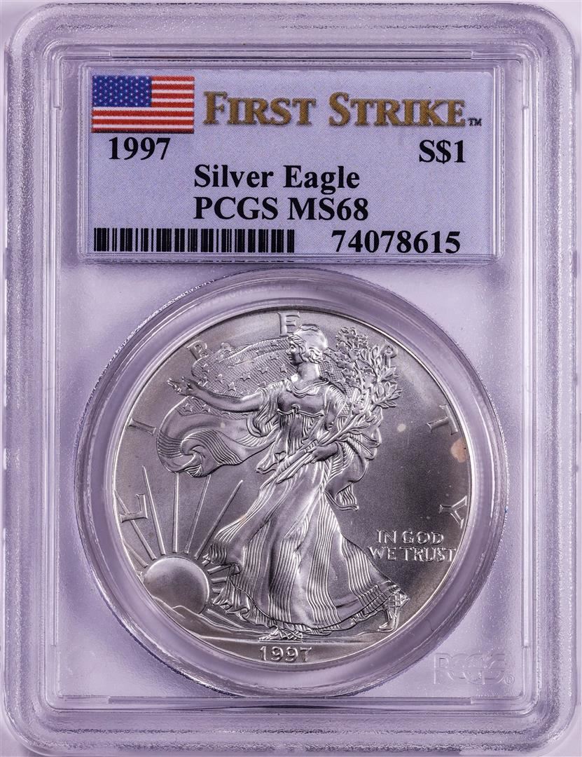 One 1997 $1 American Silver Eagle Coin PCGS MS68 First Strike. PCGS Graded.