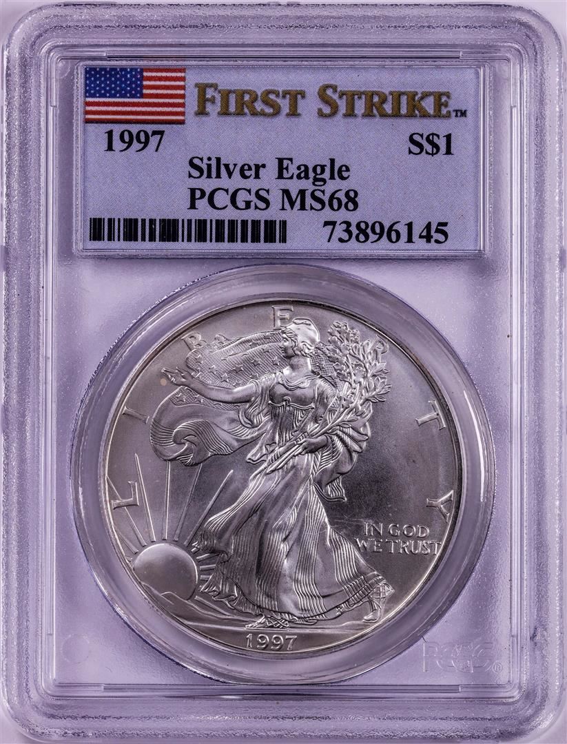 One 1997 $1 American Silver Eagle Coin PCGS MS68 First Strike. PCGS Graded.