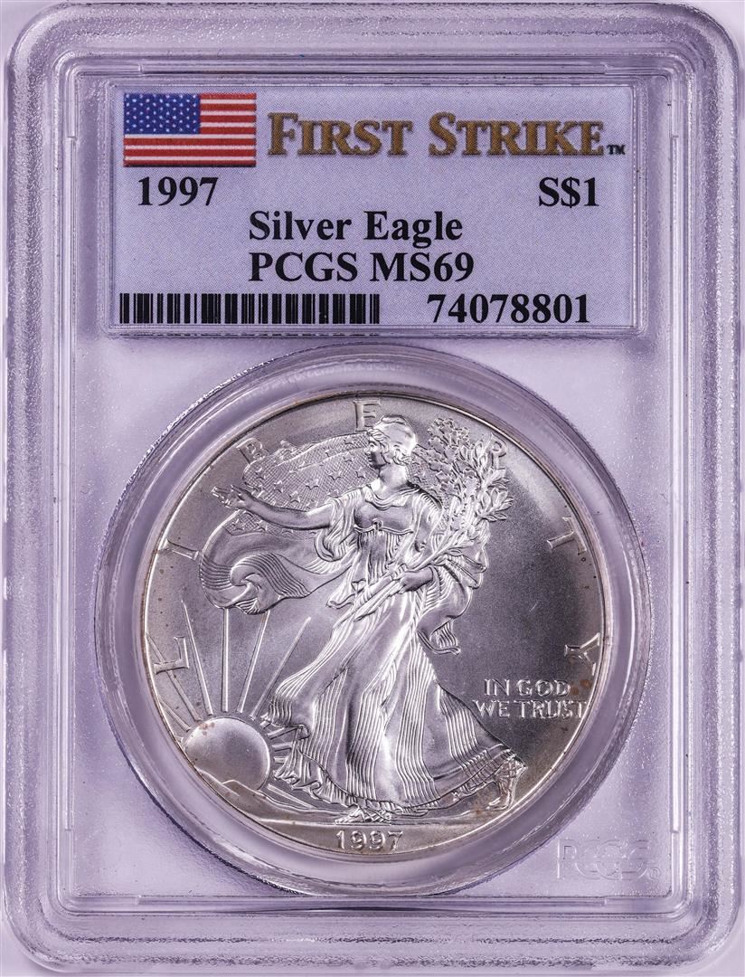 1997 $1 American Silver Eagle Coin PCGS MS69 First Strike