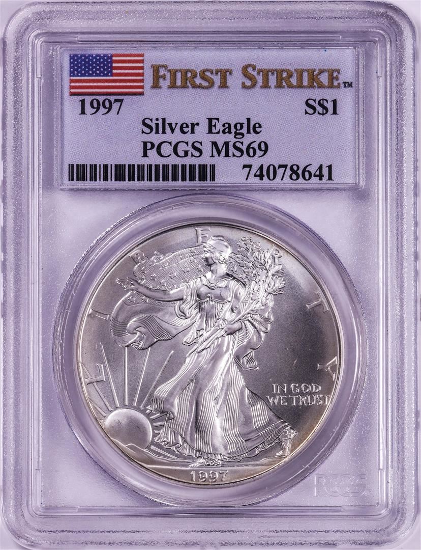One 1997 $1 American Silver Eagle Coin PCGS MS69 First Strike. PCGS Graded.