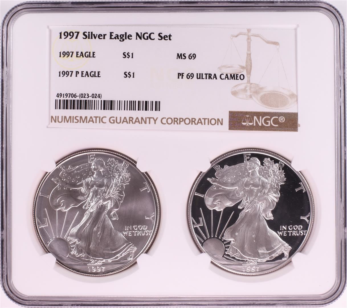 1997 $1 American Silver Eagle Coin Set NGC MS69/PF69 Ultra Cameo
