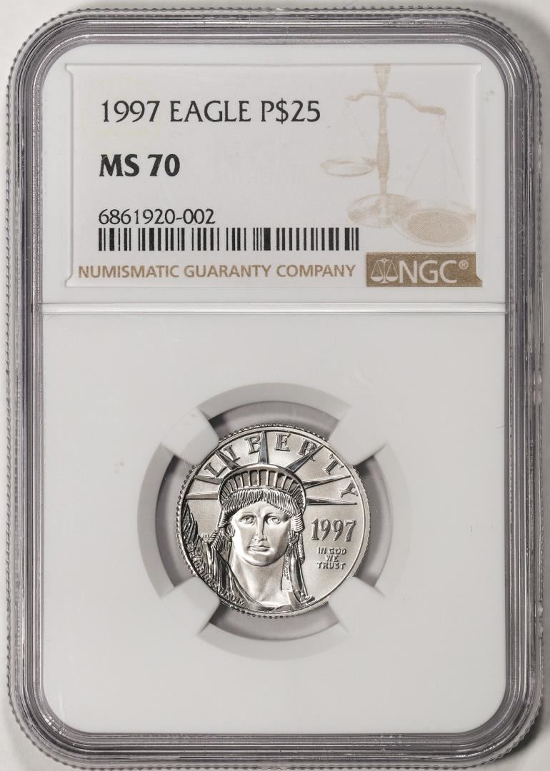 One 1997 $25 American Platinum Eagle Coin NGC MS70. NGC Certified.