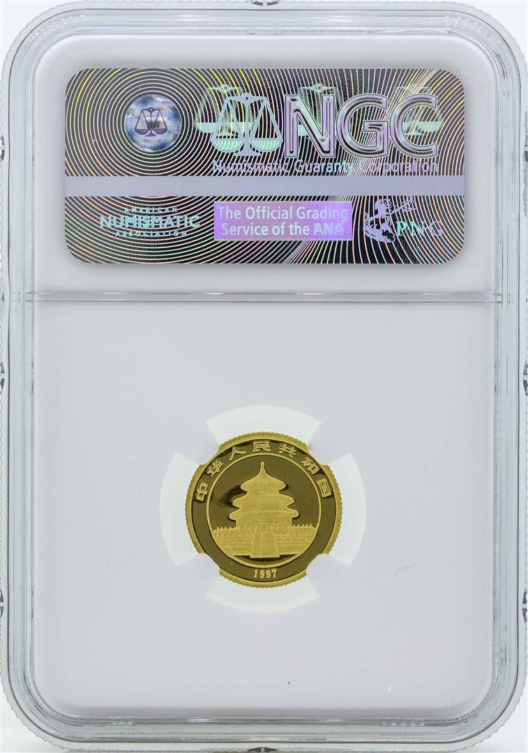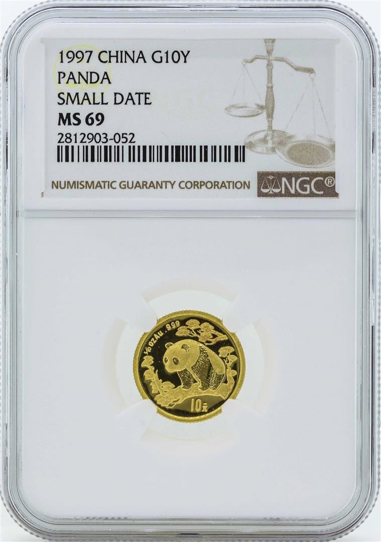 One 1997 China 10 Yuan Panda Gold Coin Small Date NGC MS69. NGC Certified.